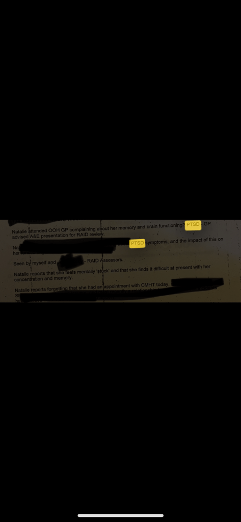 I’ve had PTSD since 2018. I wasn’t allowed back at work, but the DWP PIP penalised me for this, and so did the NHS mental health team.