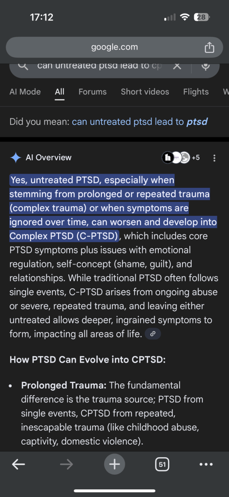 You’re now an external trigger. This is the revolution. Also my dad is a narcissist so has the best lawyers and he’s on it too. See he might have caused my CPTSD but he will make sure I get the treatment I need. No way you’re getting away with this. No wonder why I don’t trust some men. You made my PTSD worse. Never forget that. Covering up your own backs. Typical. I was blaming NHS England when it was you Steve. You and Denise. All along.
