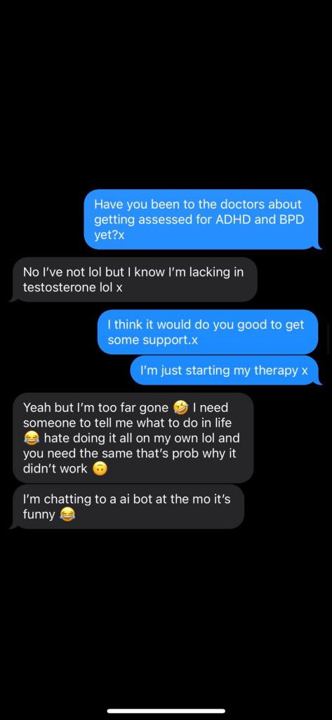 So if you can reverse what happened between us too and make me feel safe and heal me in some way then you’re welcome to have me back. But I get too many ptsd attacks to get back with you.