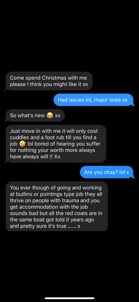 How about no. You got me the EUPD diagnosis the first time. None of my other relationships were like that except 2018 PTSD. And why did your first girlfriend had to flee miles from you? I want to know now. Maybe I didn’t know you at all.
