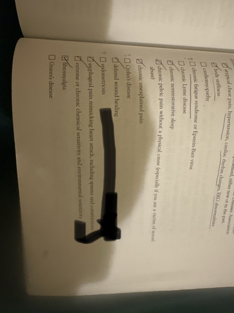 As listed on page 261 of the PTSD workbook “oesphagus pain including spasms”