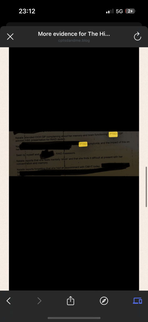 The only psychiatrist there who can be trusted is the one who picked up my CPTSD. The rest of them know what they’ve done, the evidence they chose to ignore, they know they’ve broken an abused woman down and took the parts of her and broke her down even more.