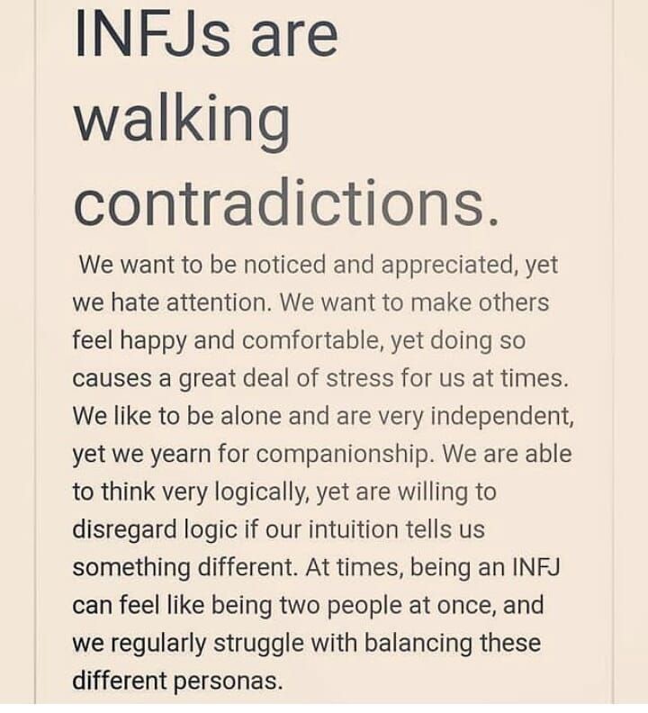 I’m an integration of two opposing forces. Two versions of PTSD that have become complex mixed with the personality type of an INFJ can be dangerous. Abusing an INFJ, betraying an INFJ always opens up guilt in others, not because the INFJ wants that, but because when they’ve had enough of being disrespected, labelled, betrayed, hurt, once they’ve had enough of people taking all the hope they had in life to live safely, healthy, and happy, they retreat. They dissociate. They panic. They get distressed.