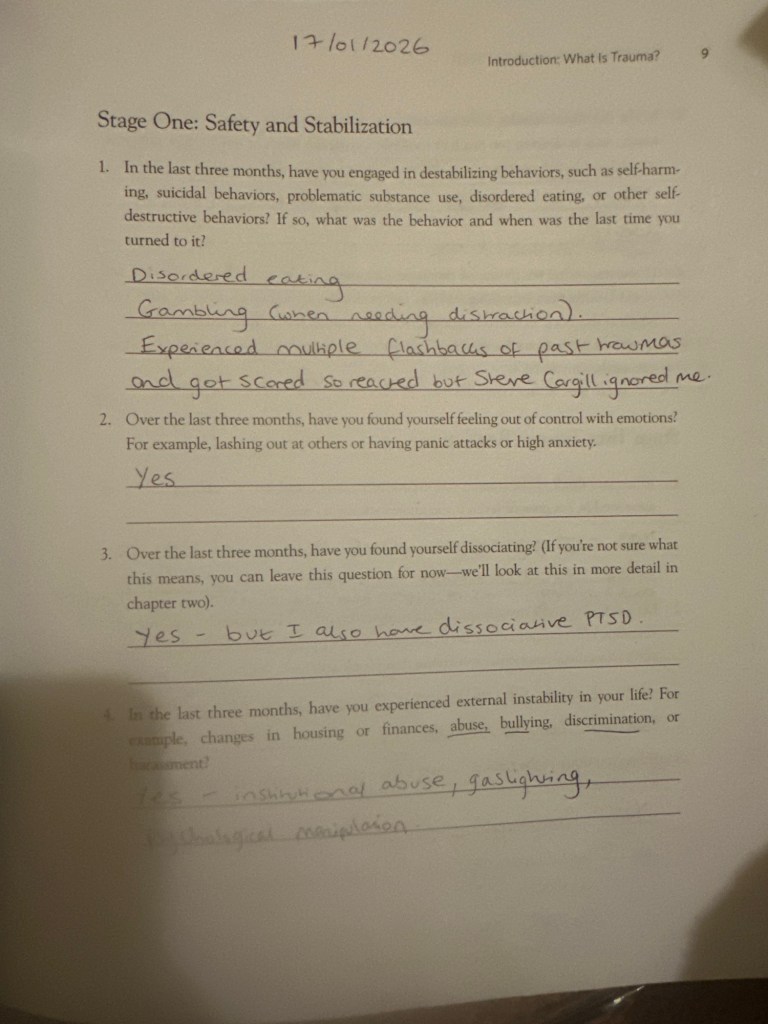 I know it’s going to be a horrendous process for me to work through, especially when I have to relive sexual abuse from 20 years ago, the abuse I do remember as other types of abuse have been suppressed, but my nervous system can’t even have sex anymore.