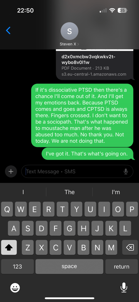 So if I do have BPD on top of my CPTSD then it can only be the dissociative type of PTSD because that makes more sense to me, than being labelled as a “disordered” personality because my mental health is linked to repetitive abuse and trauma.