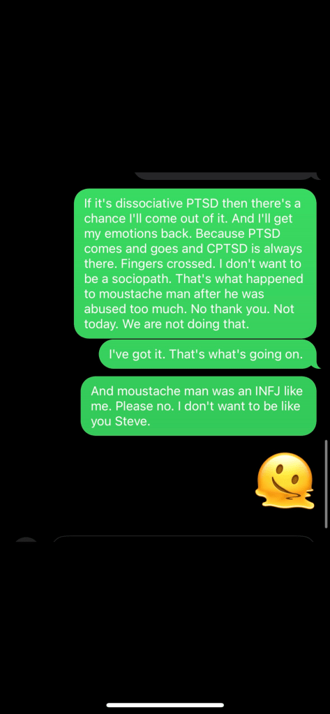 That’s why when they diagnosed me with BPD during my previous PTSD crisis when I had personality changes and the dissociative symptoms above, I thought – but “I don’t think it’s a personality disorder because this isn’t me”.