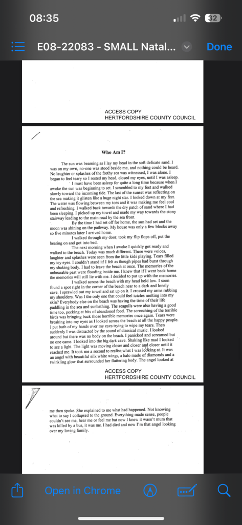I have hundreds of short stories, poems, creative writing pieces, because it was the expression of the pain I’d feel growing up around abuse.