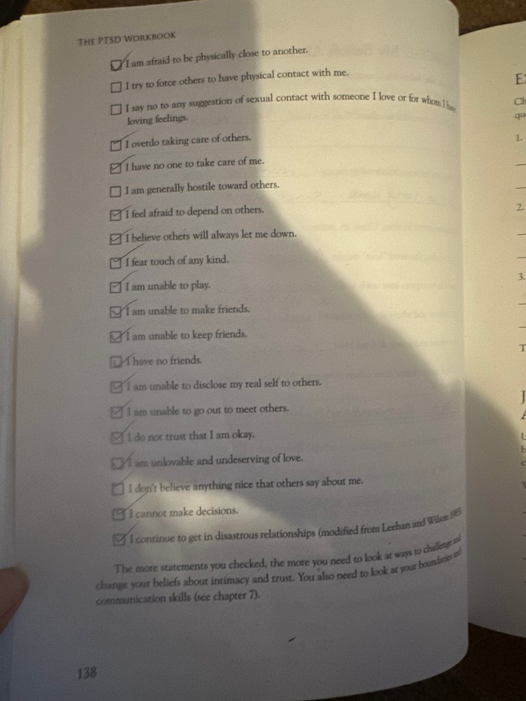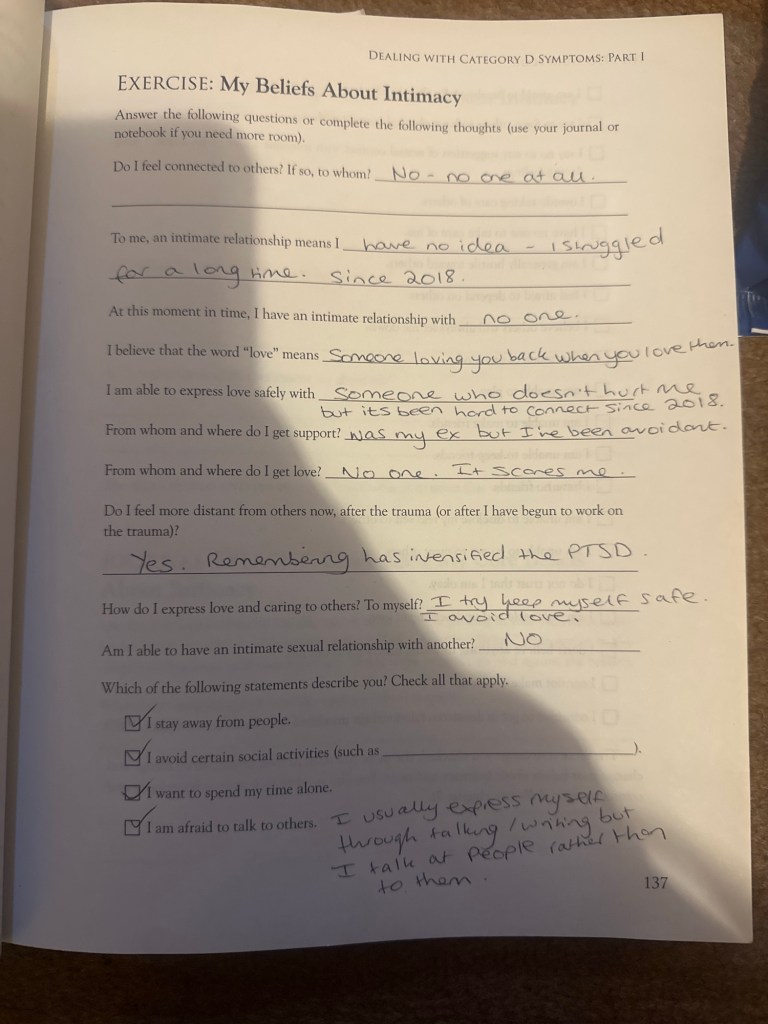 I’m permanently damaged. And since it all coming back I’ve now just realised I was never healed from the 2018 PTSD. I’m was living it but had dissociation. It kind of hurts when you realise it never actually went away and you didn’t even notice until it was too late and your brain is changed forever. It’s a shock to the nervous system.