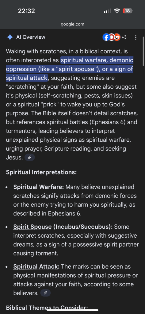 I’ve got a number of large scratches going down my back from my neck and no memory of where I got them from.