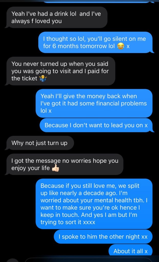 My ex is like quick get yourself on a plane Scotland don’t like mental health.